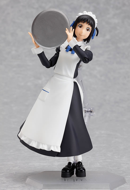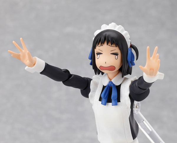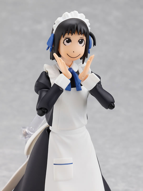 Figure body Dedicated pedestal 3 facial expression parts Obon Coffee cup Broom Perennial insect Head parts for reproducing “Isobata Uki” Explanation Prototype production: Max Factory, Maki Asai From the slapstick comedy set in a maid cafe, “Still, the town revolves”, the main character “Ayuto Arashiyama”, who works at the maid cafe “Seaside”, has been made into a figma! ●Reproduce every scene from the movie with figma original joint parts that are smooth and precise. -The skirt has a movable part, allowing for bold actions typical of Abutori. -In addition to the “normal expression” and “smiling expression”, she also comes with a “flat expression” expression. Please combine it with the included decal sticker to reproduce the expressive walking bird. -In addition to the “obon”, “coffee cup”, and “broom” that are indispensable for maid work, we also include the “Funnenmushi”, an invention that Ayutori made by modifying a fountain pen. -In addition, a complete head part is included to recreate the master and maid “Uki Isobata” with an unconventional personality and a foul mouth. -A figma-specific pedestal with a movable support that enables various scenes is included.