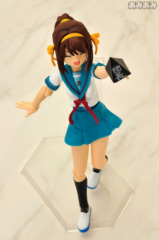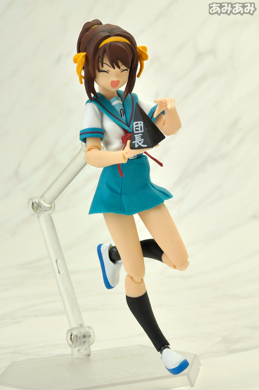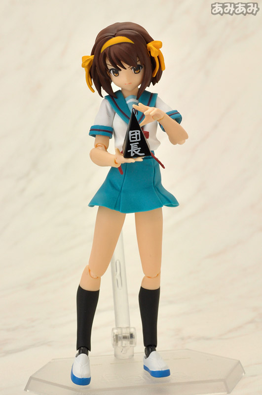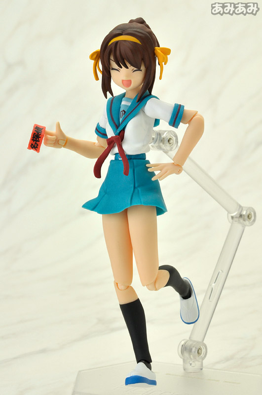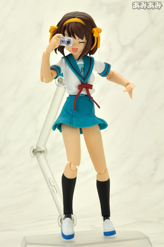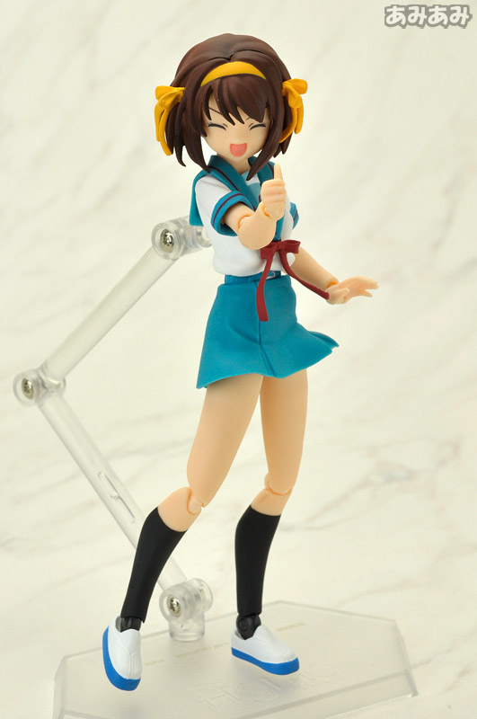 Figure body Dedicated pedestal Ponytail back of head Digital camera Leader desk sign “Great Detective” armband 2 types of facial parts Wrist parts Explanation Prototype production: Max Factory Maki Asai Everyone’s super heroine “Haruhi Suzumiya” is now a figma even in summer clothes! -Reproduce every scene from the movie with figma original joint parts that are smooth and precise. -The back of the head with an impressive ponytail in the movie is included. The moe element is doubled. -A digital camera, the leader’s desk sign, and that “great detective” armband are included. The reproducibility of the main scene is further expanded. -Two types of expression parts are included: a big smile and a slightly displeased face. Of course, it is also possible to replace it with the uniform version. ●A “thumbs up” wrist is included, allowing you to pose Haruhi in a more energetic way than before. -A figma-specific pedestal with a movable support that enables various scenes is included.