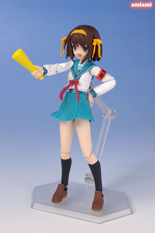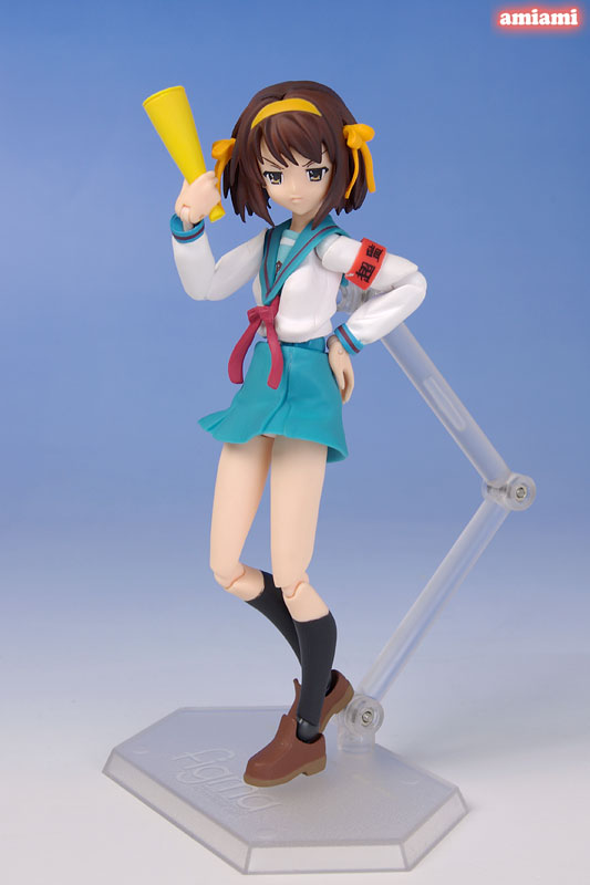 Figure body Dedicated base Shoes Megaphone Armband 3 types of facial parts Explanation Prototype production Maki Asai/Max Factory The invincible main heroine “Haruhi Suzumiya” from “The Melancholy of Haruhi Suzumiya” is now a figma in her familiar Hokko High School uniform! – Reproduce every scene in the play with smooth and tight movement thanks to newly designed joint parts. ●By using soft materials, an amazing range of motion is ensured without compromising proportions. -The dynamic modeling is exactly Haruhi! -A wide variety of optional parts are included, including indoor shoes, megaphones, and armbands, which are essential for the SOS leader. -You can enjoy Haruhi’s rich expressions just like in the movie with three types of facial parts. – Includes a pedestal with a movable support that allows you to hold various action poses.