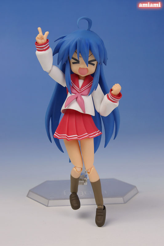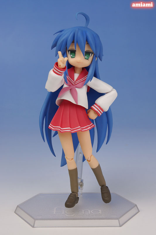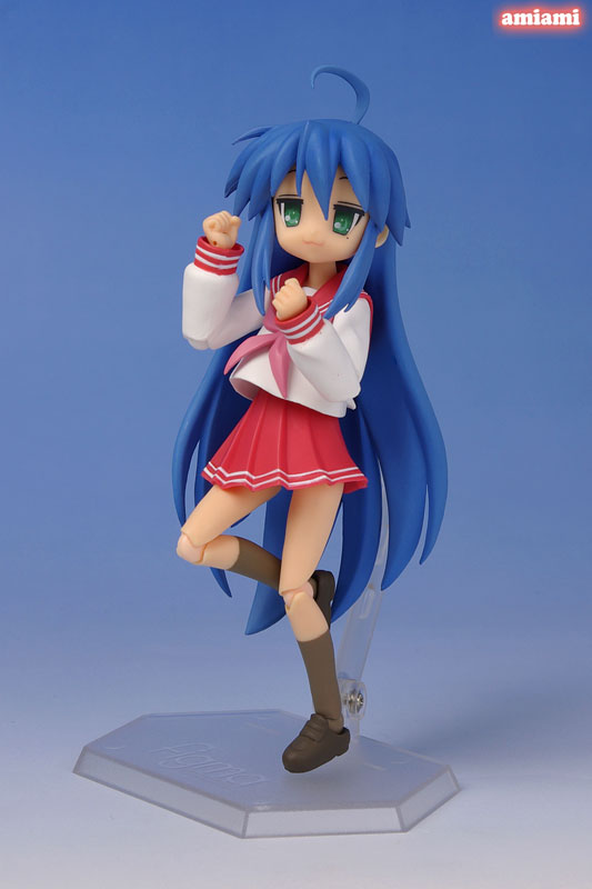 Height: approx. 130mm Description First release: July 2008 Sculptor: Maki Asai/Max Factory From “TV Anime Lucky Star” comes a figma of Konata Izumi, a high school girl who loves anime and games, wearing her winter uniform! – Reproduce every scene in the play with smooth and precise movement using newly designed joint parts. -Using soft materials for sailor uniforms and skirts ensures range of motion without compromising proportions. ●Two types of expression parts and a wide variety of wrist parts. Of course, it also includes the wrist in an ambiguous three-centimeter pose. -The included parts are my favorite chocolate cornet. Also included is a hair part that hides the hole for the pedestal in the head. -Facial expression parts can be exchanged with other “Lucky Star” figma characters. -A figma-specific pedestal with a movable support that enables various scenes is included.