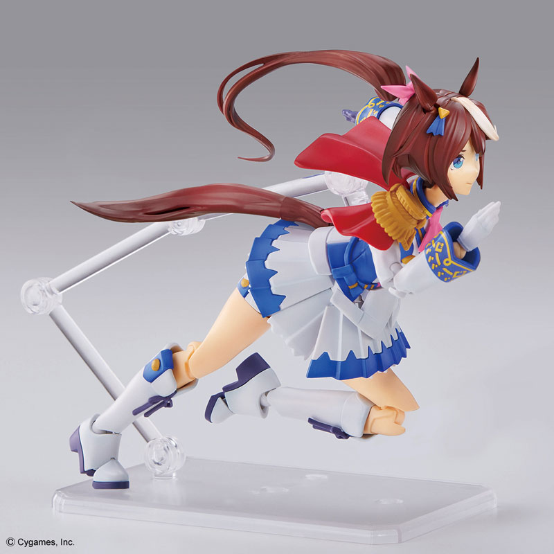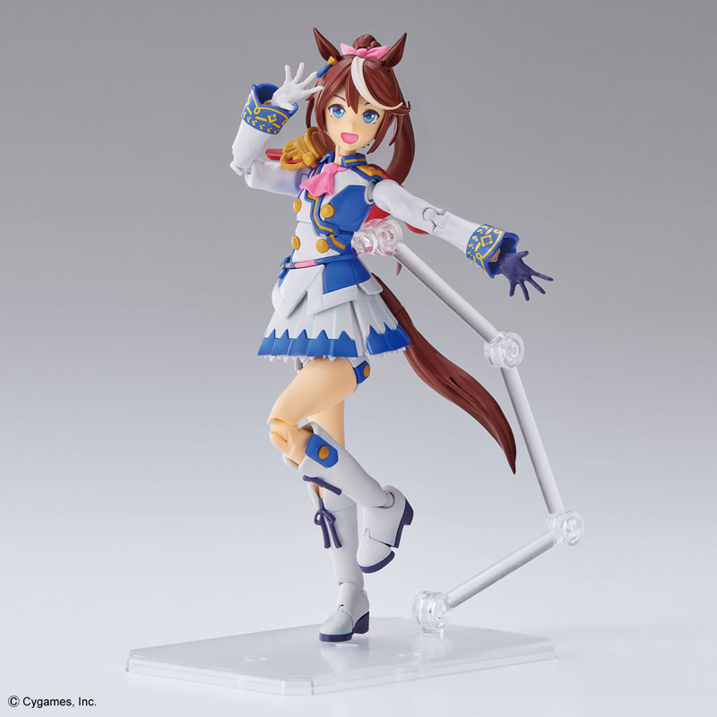 Product Specifications Plastic Model Explanation “Uma Musume Pretty Derby” Tokai Teio starts running in Figure-rise Standard! ! ■Reproduces the running pose typical of a horse girl, running with a forward leaning position. The skirt has a slit structure on the sides, allowing for a wide range of motion. The double-layered parts act as a blindfold, allowing you to run with a forward leaning posture without compromising your silhouette! ■She has an attractive smile and energetic movements. ■3 types of face parts with different expressions are included. The smiling eyes are reproduced with “tampo printing”. The other two types use water transfer decals. ■By pursuing the structure of each part, you can create a colorful finish by simply assembling the “competition uniform” and head. ■The horseshoes on the soles of the shoes are reproduced with stickers. By separating the front and back parts of the shoe, it is possible to express the way he kicks the ground. ■The head features movable ears, ribbons, and a ponytail that flutters in the wind. ■Hand parts with different colors for left and right are included. There are a total of 6 types of right hands, including a palm with expressions. ■Comes with a clear molded pedestal. By connecting the pillar to the back, you can hold the body while running.