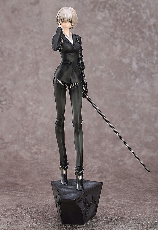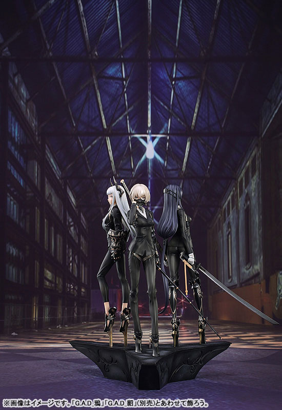 Figure body Dedicated pedestal Description A new figure project by creator neco, who has created original character series “A-Z:” etc., has started! The beautiful “G.A.D Dog” is sculpted into a three-dimensional figure, wearing a stylish tight suit and equipped with a beautifully decorated gauntlet and a special baton on her left arm. Her black-based fashion, gray bob cut, and cool eyes give her a distinctive look. A mask can be attached to your face, giving you a completely different impression from your real face. Also pay attention to the simple yet elegant pedestal that matches the character! The pedestal can be placed side by side with “G.A.D_貂” and “G.A.D_Raven” from the same series (sold separately).