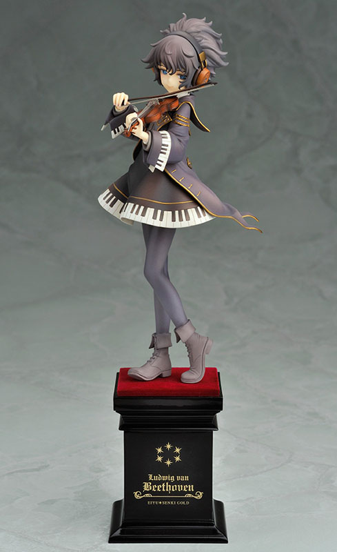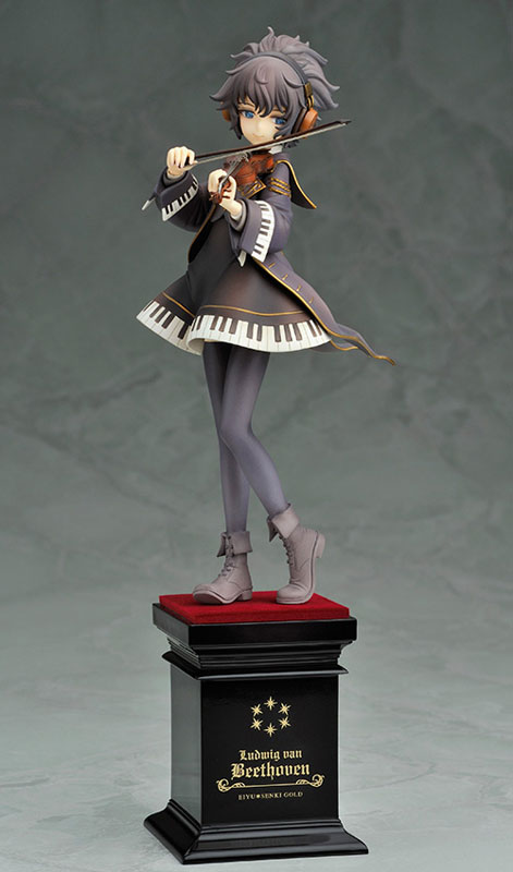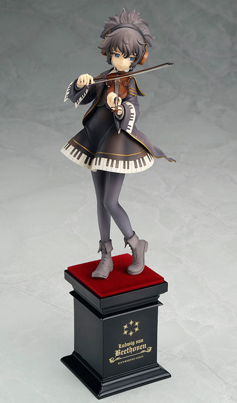 Figure body Dedicated base Explanation Prototype: KIMA (Lisa Sets) Coloring: Blue Flame Puppet Master From the region-controlling beautiful girl SLG “Eiyu * Senki GOLD” comes the silent musician “Beethoven” who works at his own pace. Based on the jacket illustration of “Eiyu*Senki Original Soundtrack”, she has been sculpted into a figure playing the violin. The pose with gentle eyes and a gentle twist of the whole body creates a sense of life, as if surrendering to the music. The light and delicate coloring is reminiscent of the jacket illustration, and the attention to detail on the clothing, violin, and other details are also highlights. The pedestal, which has flocked patterns on the top, is finished in calming colors of piano black and burgundy.