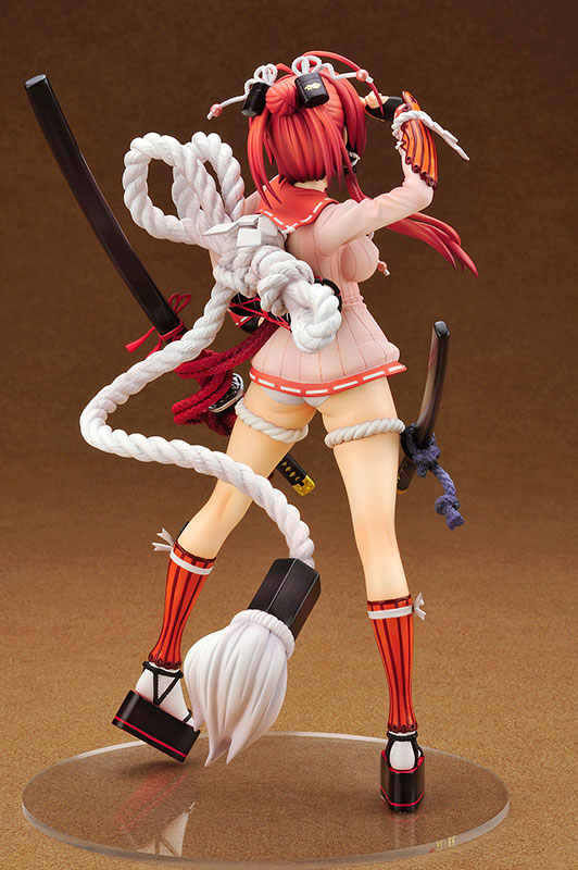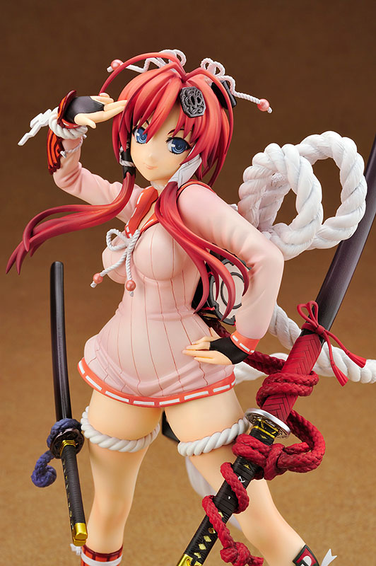 Figure body Dedicated base Explanation First release: Late October 2009 Prototype production: Mirano The figure series has finally started from “Hyakka Ryoran”, which is being developed in HJ Bunko & HJ main magazine as Monthly Hobby Japan’s 40th anniversary project / Bishoujo division! Characters created by Mr. Niθ, who is popular for his beautiful and sharp design work, have been made into 1/8 scale painted finished products. The first of these is the main heroine “Yagyu Jubei”, a natural younger sister character. The costume is based on red and pink, and the black sheath and white rope create a sharp contrast and gorgeous silhouette. Mr. Niθ’s pop-deformed Japanese-style design becomes a three-dimensional object that gives off even more presence.