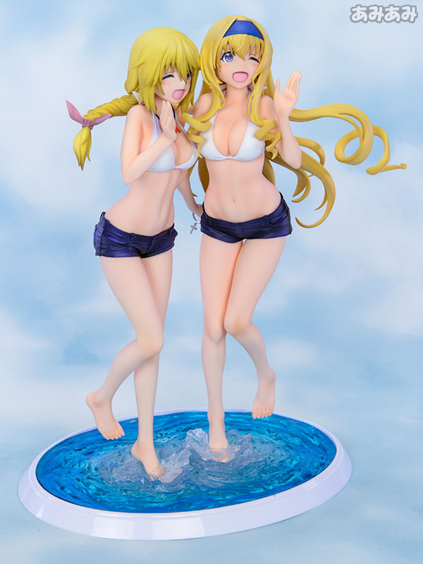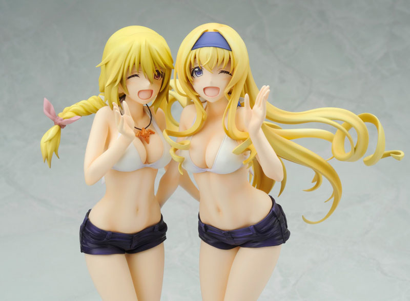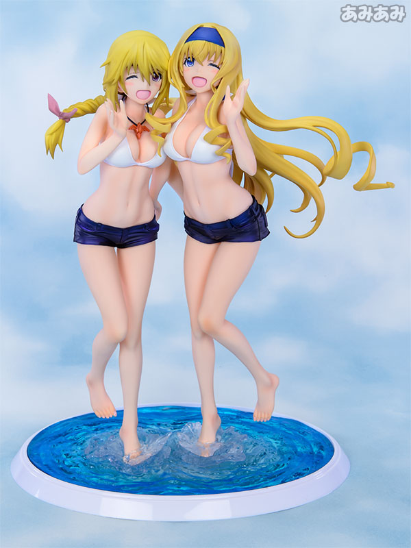 Charlotte body Cecilia body Dedicated base Explanation Prototype production: Fuyushi Tanaka Coloring: Ichiro Ayabe From “IS (Infinite Stratos)”, “Charlotte Dunois” and “Cecilia Alcott” appear as a set. Based on the illustration drawn by Takeyasu Kurashima, it has been made into a 1/7 scale three-dimensional figure with plenty of volume. She is adorable with one eye winking and a smiling face, and the hands that are placed opposite each other are reproduced with rich expression down to the fingertips. Her healthy body line looks great in a white bikini and hot pants, and her soft bare skin is dazzling. The pedestal imitates the water surface, and the spray of water that flies up from the toes creates a refreshing feeling.