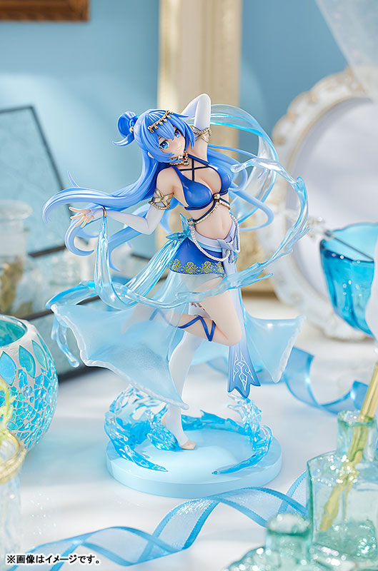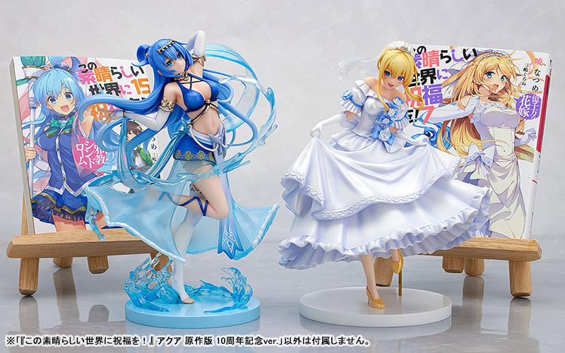 Figure body Dedicated pedestal Explanation Prototype production: Matsuda model (loincloth) Coloring: Matsuda model (loincloth) Planning and production: KDcolle (KADOKAWA Collection) Planning cooperation: Sneaker Bunko Editorial Department In commemoration of the 10th anniversary of the popular work “Kono Subarashii Sekai ni Shukufuku wo!”, Aqua with a new illustration drawn by Kurone Mishima is now available as a figure! Although it is small scale, the costume like a dancer with many decorations, dynamic pose, bright eyes, and cute smile are all reproduced in an extremely cute way! Even the facial expressions of the water dancing around her have been condensed to a size of approximately 18cm with the precision of a 1/7 scale figure. The scale makes it easy to pick up and display, so you can display it on your desk or bookshelf. We also recommend displaying it together with the paperback version of “Konosuba”! Please enjoy the sunny appearance of Aqua, the goddess of water, which is suitable for celebrating the 10th anniversary.