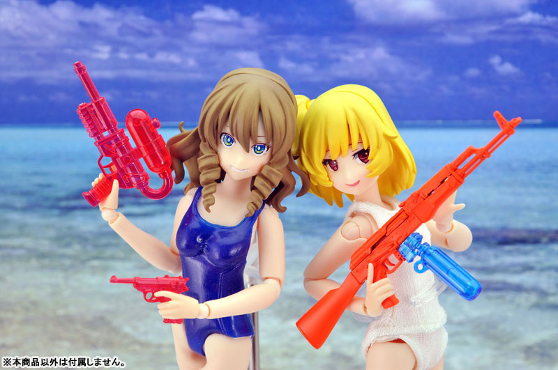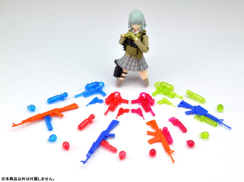 Resin (PS) Description 1/12 scale assembly kit “Little Armory” that combines realism with movable figures. As an item for this summer, we have released a new “water gun set” with flashy colors. This is an item that will help you take summer-like figure shoots! A water gun modeled after the world’s most famous assault rifle, AK, and a magazine-shaped water bottle. We have prepared a P38 pistol type water gun that has been reproduced down to the beam rifle type water gun and water inlet. As a bonus, it comes with a bottle that can be installed on the rail and an attachment that allows you to attach the bottle to an M4 magazine!