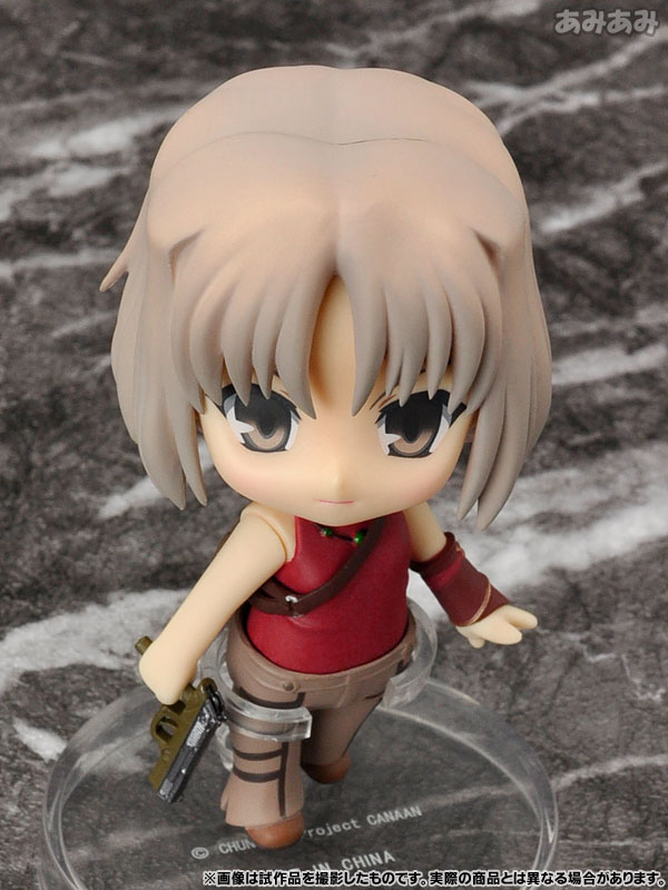 Figure body Dedicated pedestal Stick sugar bag Gun 3 types of facial parts Explanation Prototype production: Reiichi Ito Production cooperation: Nendoroid From the popular anime “CANAAN”, the heroine “Canaan” is made into a Nendoroid. This will be announced at the same time as the 1/8 scale product. There are also plenty of optional parts such as Kanan’s favorite food, stick sugar, and the bag that holds his weapon, allowing you to recreate action scenes with him holding a gun in both hands. She comes with three types of expression parts: a sharp expression typical of Kanan, who speaks little, a fighting expression that activates her synesthesia, and a girlish smile that she shows to her friend Maria.