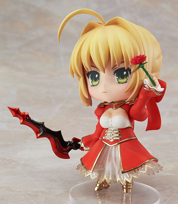 Main body Dedicated pedestal Explanation Prototype production Nendoroid “Saber Extra” from the popular game “Fate/EXTRA” is now available as a Nendoroid. Facial parts include a “smiling face”, a “glaring face”, and a “CHAN×CO face” that allows you to recreate Chibi Saber drawn by illustrator CHAN×CO. Optional parts include a sword (primordial fire (Aestus Estus)) and a rose. Enjoy recreating scenes from the play, such as the stance pose, super special moves, and the scene from the “Inviting Golden Theater (Aestus Domus Aurea)”!