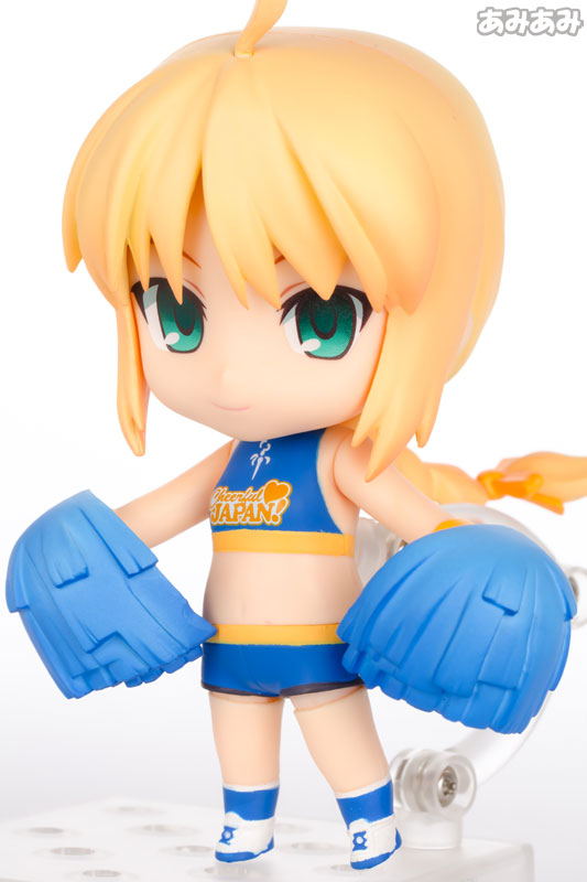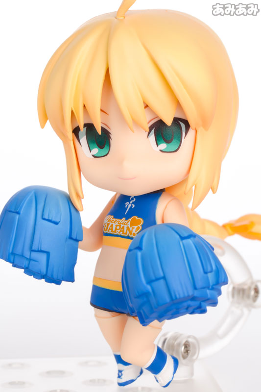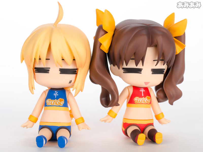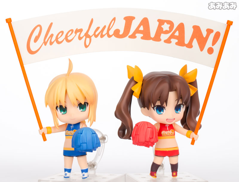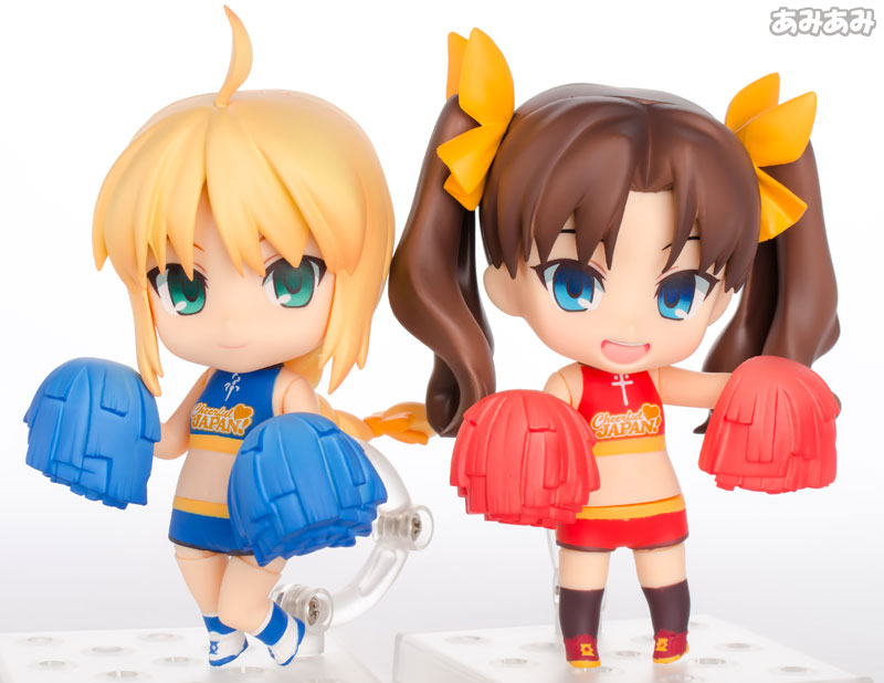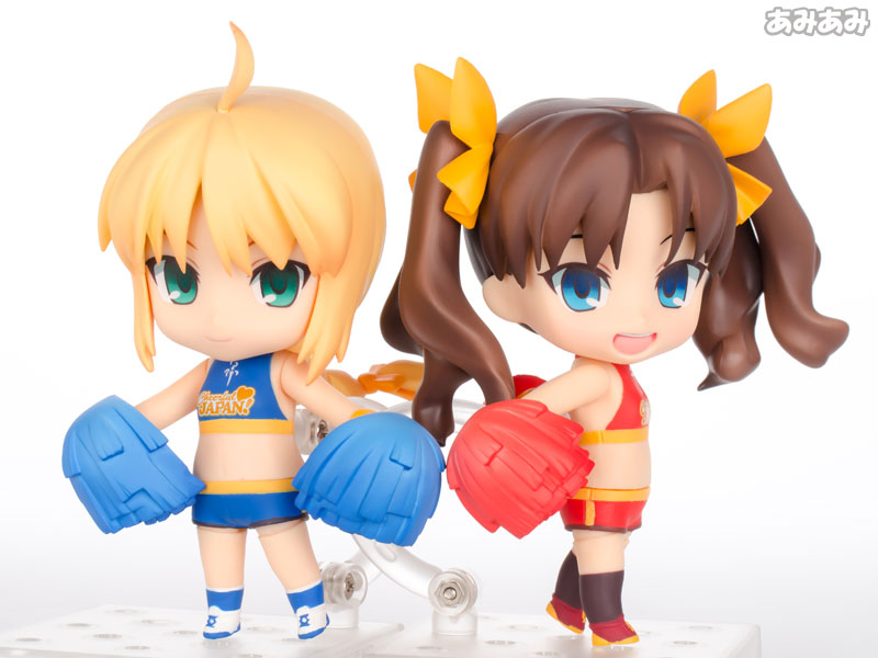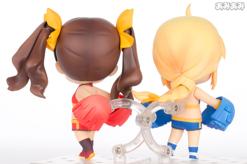 Total height: approx. 100mm (non-scale) Description “Saber” and “Rin Tohsaka” from TYPE-MOON are now available in cheerleader outfits! Takeuchi-sensei’s original illustrations depict the two girls when they were younger than in the main story, cutely recreated as Nendoroids. In addition to pompoms in their respective image colors and a cheering flag for both of them to hold together, they also come with a “flattened face” and parts for sitting.