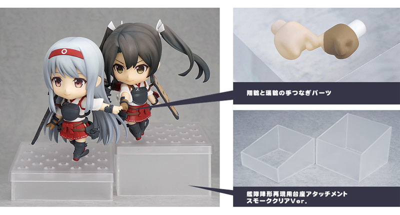Nendoroid Kantai Collection -KanColle- Shokaku Nendoroid Kantai Collection -KanColle- Zuikaku ≪Bonus for simultaneous purchase≫ Shokaku and Zuikaku holding hands parts Pedestal attachment for reproducing fleet formation Smoke Clear Ver. 2 types Explanation Prototype production Shokaku (Hidetoshi Nishibe) / Zuikaku (Shichibei) Production cooperation Nendoron Popular browser game “Kantai Collection” -KanColle-” comes a Nendoroid of the first Shokaku-class aircraft carrier, Shokaku! Although it is based on Kai Ni among many modified states, it can be easily converted to Kai Niko and normal. Furthermore, it is a luxurious specification that also comes with a partially damaged body. Three optional carrier-based aircraft are included: the “Zero Type 52” and the “Tenzan”, and one of the Tenzan is the “Tenzan 12 Type (Murata Squadron)”. Ice cream, a familiar food for Kanmusume Nendoroids, is available to match Zuikaku. In addition to her standard expression, she also comes with an attack expression and a semi-damaged expression, allowing you to recreate a variety of different scenes. ≪Zukaku≫ From the popular browser game “Kantai Collection -KanColle-”, the second Shokaku-class aircraft carrier “Zukaku” has been turned into a Nendoroid! Although it is based on Kai Niko among many modified states, it can be easily converted to normal. Furthermore, it is a luxurious specification that also comes with a partially damaged body. Optional carrier-based aircraft include one “Type 0 Battle Type 52”, “Type 0 Battle Type 62 (Bakusen)”, “Type 0 Battle Type 52 C (with Iwai Platoon)”, and “Comet”. Ice cream, a familiar food for Kanmusu Nendoroids, is available to match Shokaku. In addition to his standard expression, he also comes with a half-broken expression and a stern expression, which can also be used as an attack expression, so you can recreate a variety of different scenes. As a pre-order bonus, “Shoukaku and Zuikaku hand-holding parts” and “pedestal attachment for reproducing fleet formations” are included. The “Fleet Formation Reproduction Attachment” is an additional part that allows you to add height differences, so you can display or photograph the fleet formation.