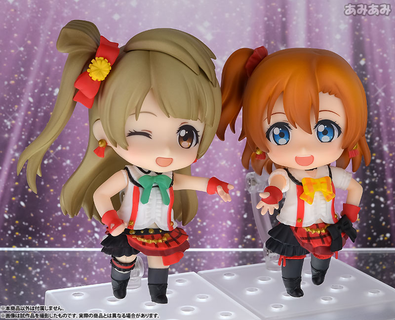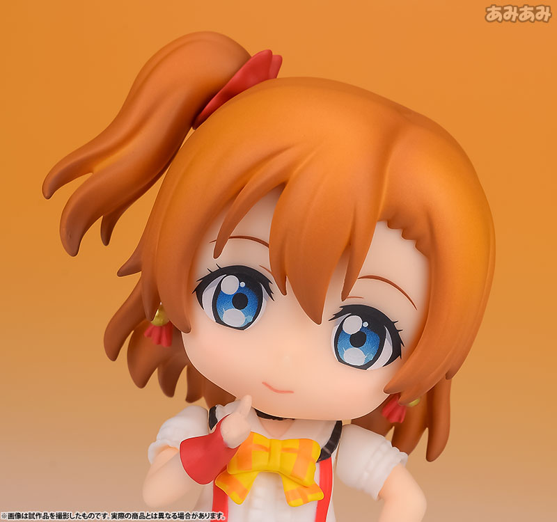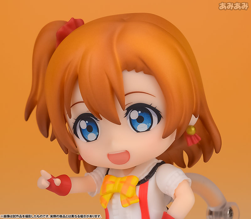 Figure body Dedicated pedestal Expression parts (smiling face, smiling face) Attached parts for dance poses Explanation Prototype production: Shinya Iguchi Production cooperation: Nendoroid Popular TV anime “Love Live! ” comes a Nendoroid of μ’s leader Honoka Kousaka, whose charm point is her bright and cheerful smile, wearing her “We Are Now” costume! She comes with two expression parts: a smiling face and a cheerful smile with a wide open mouth typical of Honoka. With the included parts, you can recreate various dance poses inspired by the opening of the first season of the TV anime.
