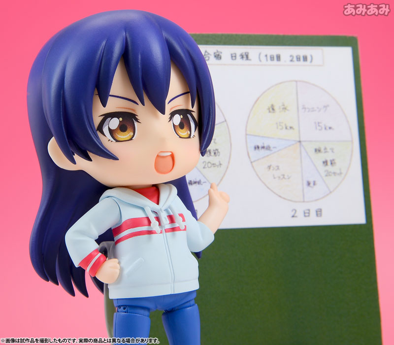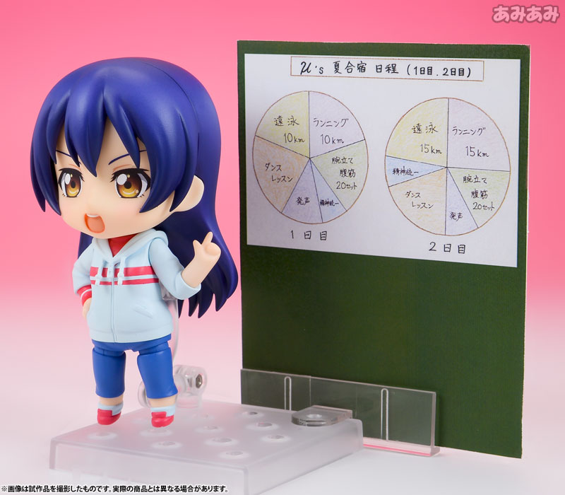 Figure body Dedicated pedestal Serious face Shy face Diet plan parts Practice menu parts Love arrow shoot pose parts Hand holding parts ≪GOODSMILE ONLINE SHOP pre-order bonus≫ Special background paper for Nendoroid (blue sky) Special specification pedestal for Nendoroid Commentary Prototype production: Shinya Iguchi, Shichibei Production cooperation: Nendoroid Popular TV anime “Love Live! ” comes a Nendoroid of Umi Sonoda in her training uniform! She comes with two expression parts: a serious and determined expression, and an embarrassed expression, which is perfect for her shy girlfriend. “Diet plan” and “practice menu” parts are also included, so you can recreate him forcing the members to do rigorous training. In addition to that, you can also enjoy seeing her shyly doing the “Love Arrow Shoot” pose. It also comes with hand-holding parts that can be used with Nendoroids from the “We Are Now” series. Please enjoy it in combination with the Nendoroid μ’s member practice wear version sold separately♪