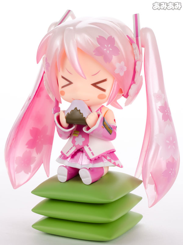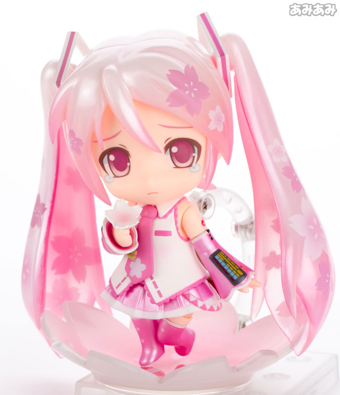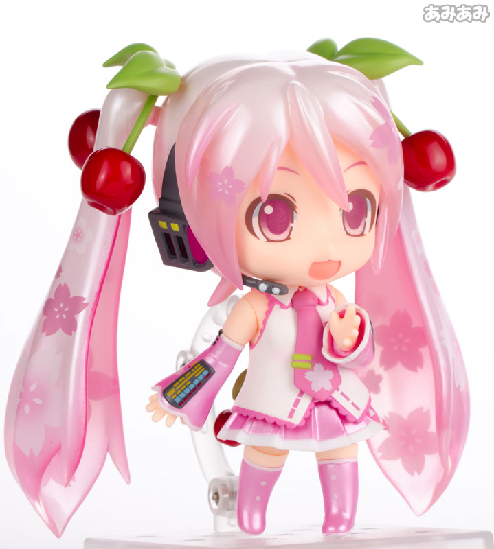 Figure body Dedicated pedestal Expression parts (crying face, sullen face) Replaceable head parts Description “Sakura Miku” with a cute outfit inspired by cherry blossoms is now available as a Nendoroid. Based on the illustrations by illustrator Petit Debiru, it is finished with delicate colors. She comes with a “crying face” suitable for the season of encounters and partings, and a “sniffing face” in which she innocently eats sakuramochi. Furthermore, by replacing the head parts, it is also possible to change the hair ornament to a “cherry”. Please spend a beautiful spring day with Sakura Miku.