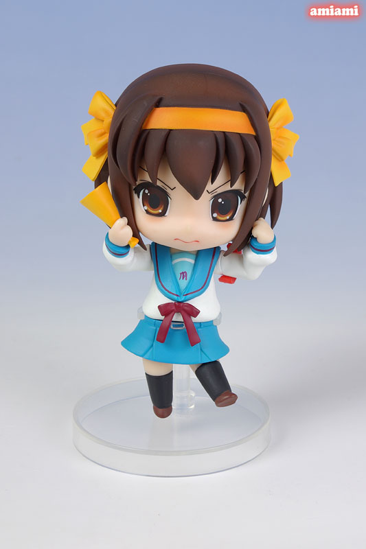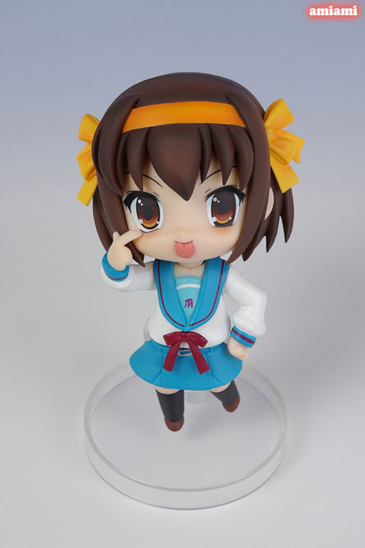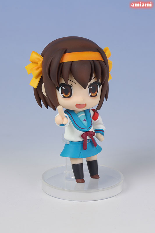 Total height: approx. 100 mm (non-scale) Explanation Prototype production: Yukio Ageta (Max Factory) Production cooperation: Nendoroid A plan to make “The Melancholy of Haruhi Suzumiya” into a Nendoroid was secretly progressing. Introducing the finally completed “Suzumiya Haruhi”. By rearranging the 3 types of expression-changing face parts and the bonus parts, you can recreate the familiar “pointing”, “super director”, and “Akkanbe”. The relaxed charm of the Nendoroid and the richness of her facial expressions are a perfect match. These Nendoroids are cute and fun to display and play with.“Everyone should buy at least three!”