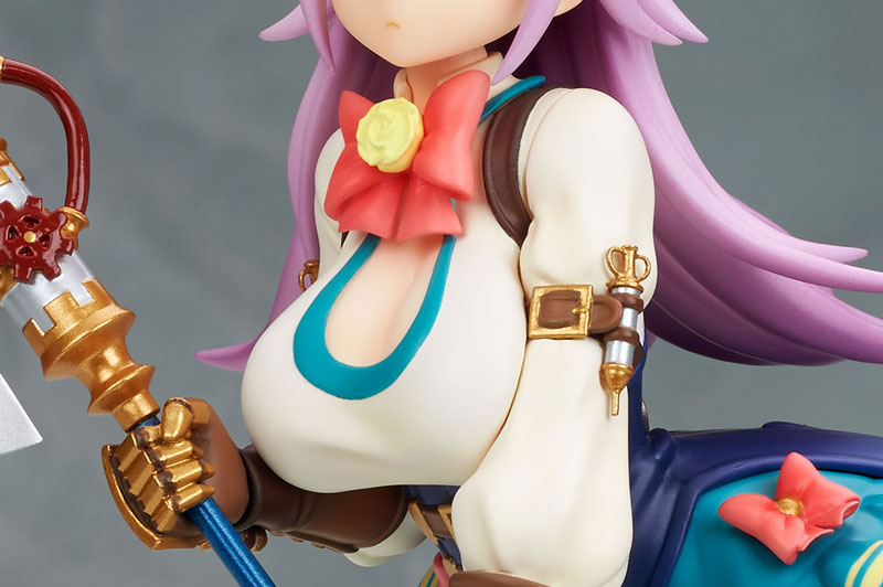 In the game app and anime, she has shown off various costumes, but this time she has been made into one of those costumes, the “steampunk dress” costume! This is a familiar costume that is also used in the main image. The soft texture of the fabric is contrasted with the linear, stiff impression of the ornaments, and the rugged texture of the leather boots and gloves. These charms, which are exquisitely balanced even in the original illustration, have been faithfully reproduced in the figure! The rounded frills on the skirt make it look cute. It’s very carefully made, so please take your time and take a look at it!