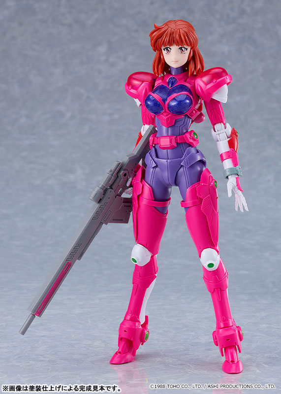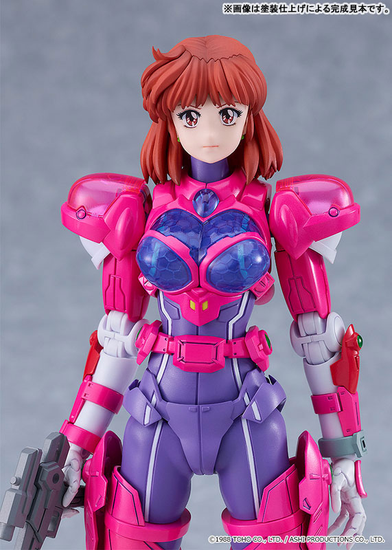 Overall height: Approx. 170mm (non-scale) Explanation Prototype production: Fuyushi Tanaka, Seiichi Matsumiya (Max Factory) Coloring: Ekoshi Arrangement design: Kenji Ando The heroine “Anis Farm”, who gained immense popularity from the 1988 TV anime “Chousonic Warrior Borgman”, has been made into a plastic model wearing a Valtechter. The design arrangement by Kenji Ando, the reconstruction of the coloring, and the modeling by Fuyushi Tanaka have resulted in a more modern and attractive model with a large amount of information. ・Based on the design drawn by Kenji Ando for this kit, the proportions and equipment have been reconstructed, allowing you to enjoy the modeling with a sense of density. -By assembling the parts divided into each color, you can create an anise farm that looks close to the image. – Three types of face parts (normal face, straight face, and smile) with eye paint are included. Eye decals with different lines of sight are also included, allowing you to express your favorite expression. – Seals are included for the painted areas, and some are already colored. -You can also reproduce the head without the helmet. – Clear parts are used for the visor, chest armor, etc. ・The package uses a new illustration by character designer Michitaka Kikuchi. ・Basically no adhesive is required, but there are some areas where adhesive is recommended. *Please prepare plastic model nippers and adhesive for assembly.