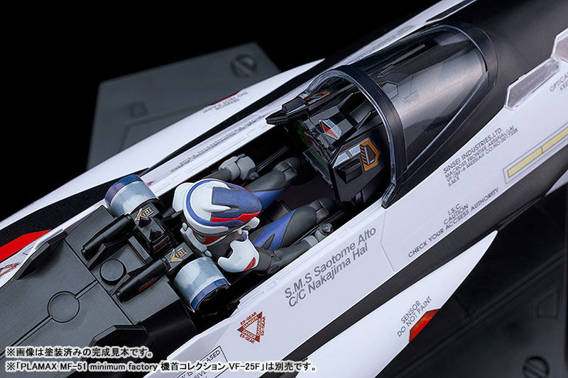 Decal included Explanation Prototype production: Max Factory (Hinato Sagara) The main character of “Macross F”, Alto Saotome, is made into a 1/20 plastic model. For the first time in the Minimum Factory series, we have implemented a joint movable gimmick, allowing for a variety of displays such as sitting and standing poses. Hand parts include one for holding the throttle and control stick, and another for a salute pose. Create your own scene by combining it with the big-scale minimum factory nose collection VF-25F. The kit also includes water slide decals that can reproduce the markings of the PLAMAX MF-51 minimum factory nose collection VF-25F, allowing you to create a more realistic finished product. *Adhesive is required for assembly. *In order to install this product on the PLAMAX MF-51 minimum factory nose collection VF-25F, processing to the cockpit part is required.