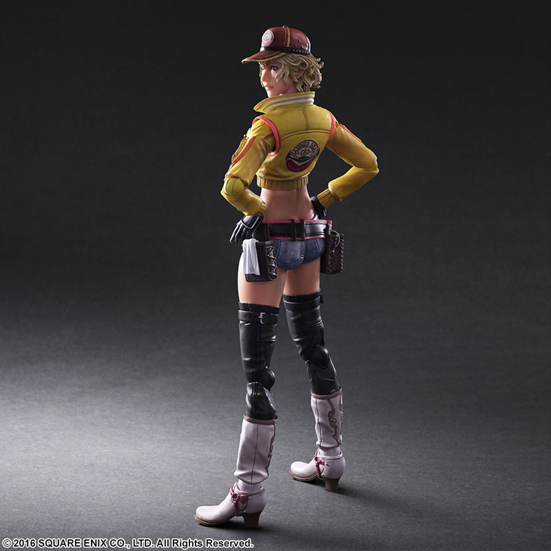 Figure body PLAY ARTS Kai special pedestal Tool box Tools x 2 Replacement hands x 3 Description The characteristic costume that highlights her outstanding style is reproduced with modeling and coloring. She is the one who runs the “Hammerhead” repair shop, and the texture of the materials such as caps and jackets with the factory logo are detailed. Also, the tool box she uses is so well made that it looks like it has been used. Her features are fully incorporated, such as the reproduction of sunburn marks peeking through gaps in her clothes, which can also be seen in the game.