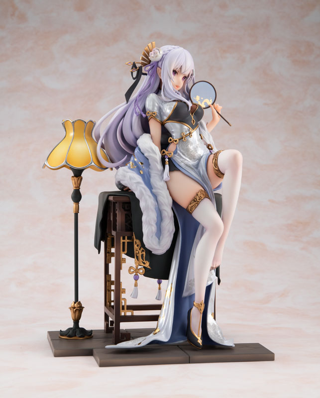 Plastic Explanation Prototype production: Animester Production cooperation: Animester Coloring: Animester From “Re: Life in a Different World from Zero”, Emilia appears in an elegant Chinese dress. Dressed in an arranged dress and sitting at a decorated desk, she looks elegant as she is clad in gorgeous fur. Her smile that is hidden behind a fan, her flowing hairline, and her shoes with only one side taken off give her an elegant yet somehow different atmosphere from the usual Emilia, making her a masterpiece that is definitely worth seeing. It is a pedestal that can be displayed together with Rem (sold separately). Please enjoy Emilia, who wears a slightly different atmosphere than usual, on hand.