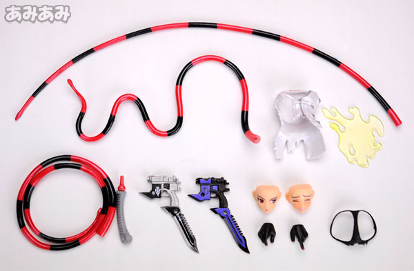 – Figure body x 1 – M mode face x 1 – S mode face x 1 – Damage dress x 1 – Whip x 3 – Handle for whip x 1 – Gun with dagger x 2 – Optional pants x 1・Protective solution x 1 ・Optional hand x 2 ・Display base x 1 Explanation Prototype production: Eiichiro Matsumoto From Queen’s Gate, the world-crossing treasure hunter “Gate Opener Alice Boosted Version” is now available. The face and costume have “S (attack) mode” and “M (lose) mode” and can be replaced. You can choose from two modes: a dignified appearance during battle, a sexy appearance when taking damage, and S&M. Alice transforms into an adult while still wearing the clothes of a girl. Her radiant body and tight-fitting suit emphasize her sexiness. -One S mode facial expression and one M mode writhing in pain are included. -The hair is equipped with two revolver joints, allowing you to recreate the appearance of long hair dancing lightly. -The whip is made of soft material and can be bent freely, and it comes in 3 types with different shapes and lengths, and it is a super luxurious specification that can be wrapped around the body to recreate the “boost defense” just like in the original. -Two pistols with trademark daggers are also standard equipment in blue and silver. -Pants come in regular and damaged versions. Also included is leaked protective solution. ●Equipped with 18 revolver joints. ●Two types of optional hands and a movable decorative stand are included.