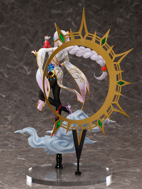 PVC, ABS Explanation Prototype production: Miro Production cooperation: Masamura Seisakusho Color production: Aizer ◇ Emilia is now a figure in a beautiful Chinese dress! From “Re:ZERO -Starting Life in Another World”, the main heroine Emilia is made into a figure wearing a Chinese dress style costume originally designed by F:NEX! Emilia, standing dignifiedly on a pedestal designed with floating clouds, is a beauty with femininity and elegance. The dress is designed with Emilia in mind. The pure white dress has gold decorations that give it a luxurious feel. The black tights are made of cloth and have an authentic texture, giving them an elegant finish. Please invite the noble and beautiful Emilia in a Chinese dress. ◇Elegant and elegant smile Her clear purple eyes and gentle smile are full of elegance. Her beautiful silver hair is carefully expressed as it flutters in the wind, and the use of clear material gives it a translucent beauty. The bun hair ornament is also a key point. ◇Beautifully painted and elegant costume The Chinese dress style costume is an original design of F:NEX. The beautiful dress is based on white, and the texture of the shiny fabric and wrinkles are carefully sculpted, and the gold decorations enhance the sense of luxury. Every detail, including the bangles and boots, is finished without compromise. The sleeves of the dress, which flutters in the wind, are painted with gradation, giving it an elegant impression. ◇The black tights are made of cloth to create a realistic texture.The bold legs peeking out from the dress are shockingly beautiful. The black tights are made of cloth, giving them a real texture. The spirit pack dressed in Chinese New Year costume is also cute. ◇Original pedestal with the image of clouds and the sun The pedestal with the image of floating clouds and sunlight is an original design of F:NEX. It colors the neat and beautiful Emilia. ◇ Enjoy the 360° view of Emilia’s clear eyes, beautiful silver hair, elegant dress, slender legs, black cloth tights, etc. Please enjoy the 360° view of the elegant and beautiful Emilia. ◇Please invite the noble and beautiful Emilia in a Chinese dress.