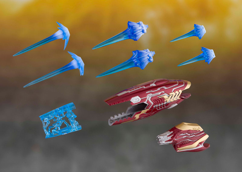 Main body Replacement wrists (3 types each for left and right) Armed parts A Effects for armed parts A Armed parts B Joint for Tamashii STAGE Effect set Description The highest figure in Japan that is both sculptural and movable. Two types of weapons exclusive to Iron Man Mark 50 are included. Includes effects that can be attached to limbs. Both arms can be equipped with the latest weapons.