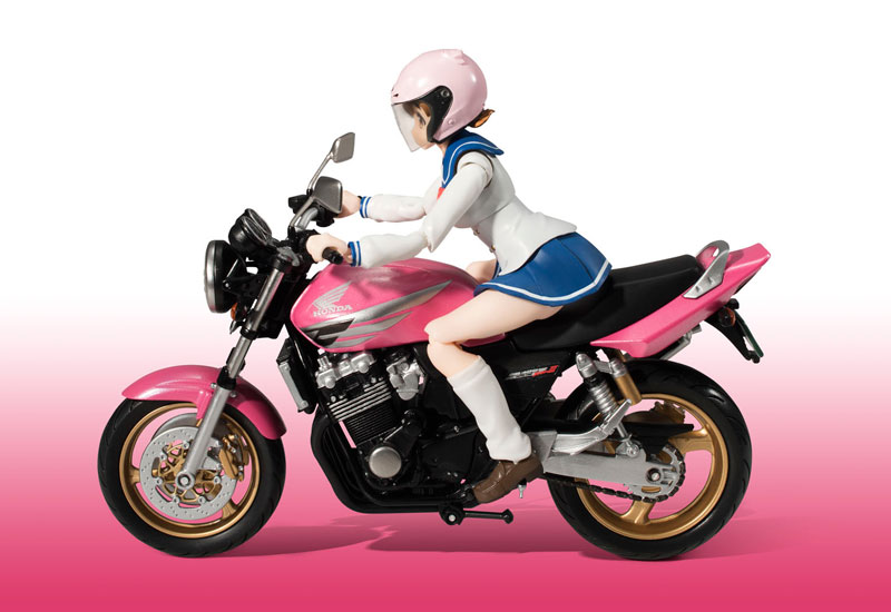 Figure body 3 types of replacement facial parts 3 types of replacement wrist left and right Helmet Complete set of hair parts for helmet Skirt parts for riding a motorcycle Bike body Rear wheel pedestal Soul STAGE connection joint Description Hane Sakura, the main character of the anime “Bakuon!!”, and her beloved machine, CB400 with a cute pink body SUPER FOUR is here. The cute Hane-chan’s body uses S.H.Figuarts’ new beautiful girl body, and is designed to maintain a beautiful silhouette while moving well. It is possible to ride on a motorcycle by replacing the skirt part. Helmet parts are included, and by replacing them with the Hane body, it is possible to reproduce the state in which the helmet is worn. Three types of replacement facial parts for Hane-chan are included. Also, facial parts can be exchanged even when wearing a helmet.