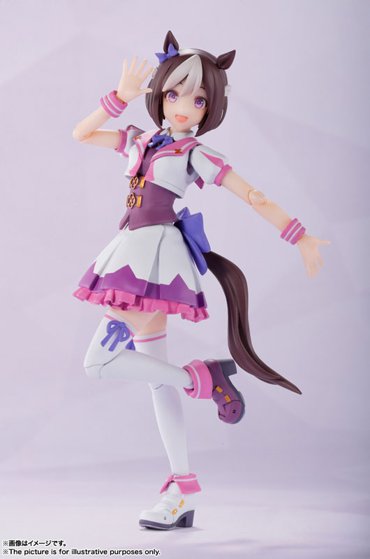 Main body 4 types of replacement facial parts 2 types of replacement wrists and 3 types on the right Pedestal Description “Special Week” from the game “Uma Musume Pretty Derby” is now available at S.H.Figuarts! In addition to the articulation of the S.H.Figuarts series, it also comes with a wide variety of expression parts and wrist parts, allowing you to recreate race scenes and live scenes! The skirt part uses soft material to achieve flexible movement!