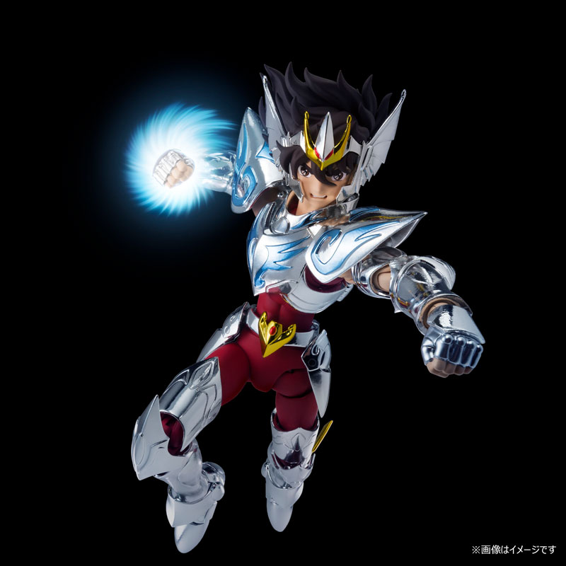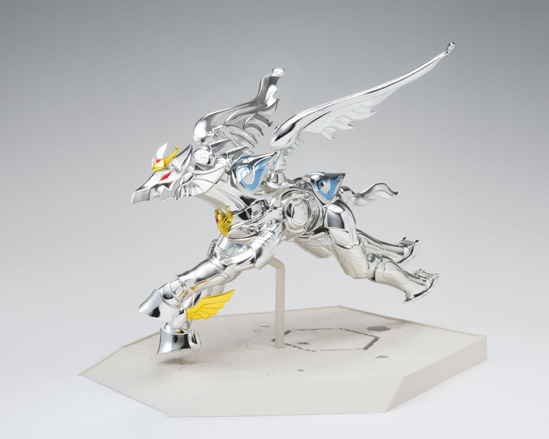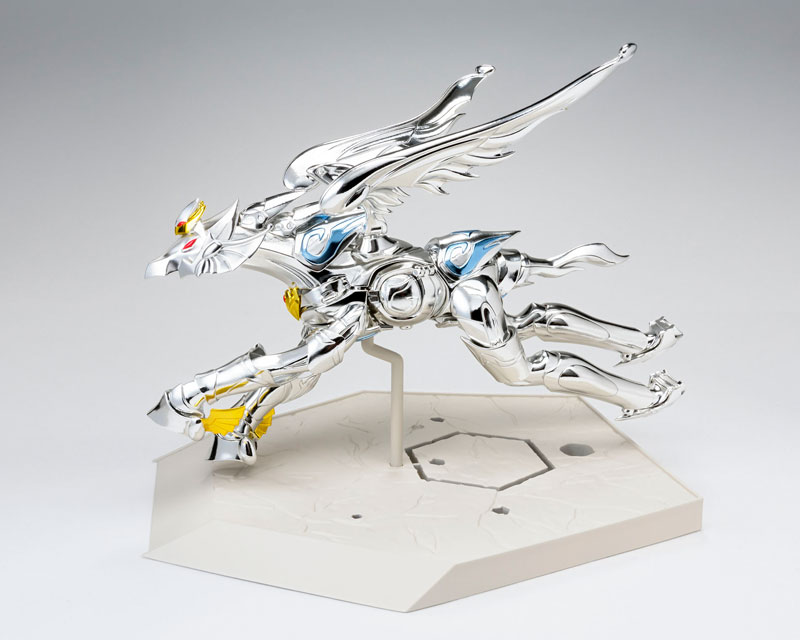 Main body Holy Cloth set 15th anniversary pedestal 2 types of replacement facial parts Complete set of hair parts for wearing the Holy costume 3 types of replacement wrists on the left and right Object frame set Explanation Commemorating the 15th anniversary of the Saint Cloth myth, we have commercialized the phantom Holy Cloth! A gimmick that can be converted into an object, which is a common specification of “Saint Cloth Myth”, has also been realized. Since it did not appear in the movie, there are no setting pictures, but a new design was created with the cooperation of Toei Animation. Since the worn state is a design that follows the past Saint Cloths, it uses the Pegasus motif as before.