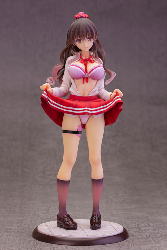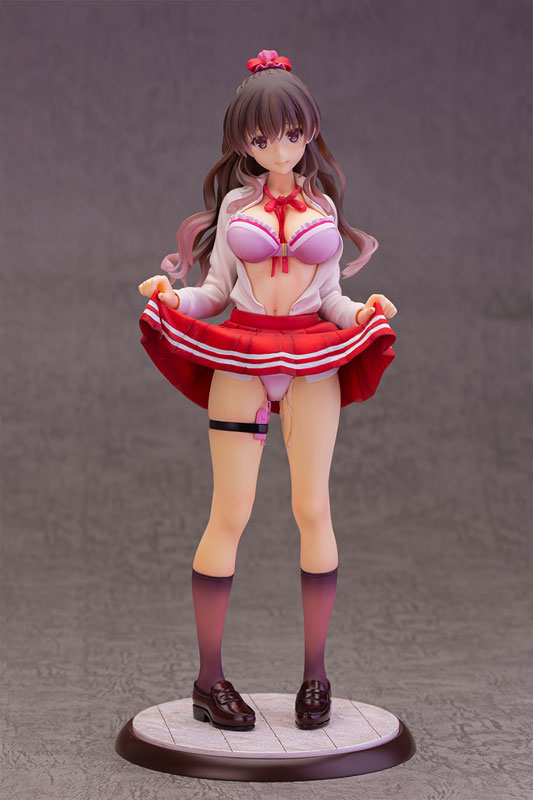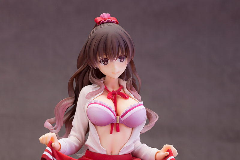 with a shy smile appears! She is posed with her skirt pulled up with both hands to create a three-dimensional figure. The world view of the beautiful original painting has been thoroughly reproduced, including the soft body line peeking through the clothes and the expression on her face. Please enjoy the secret figure that Sara shows only to you.