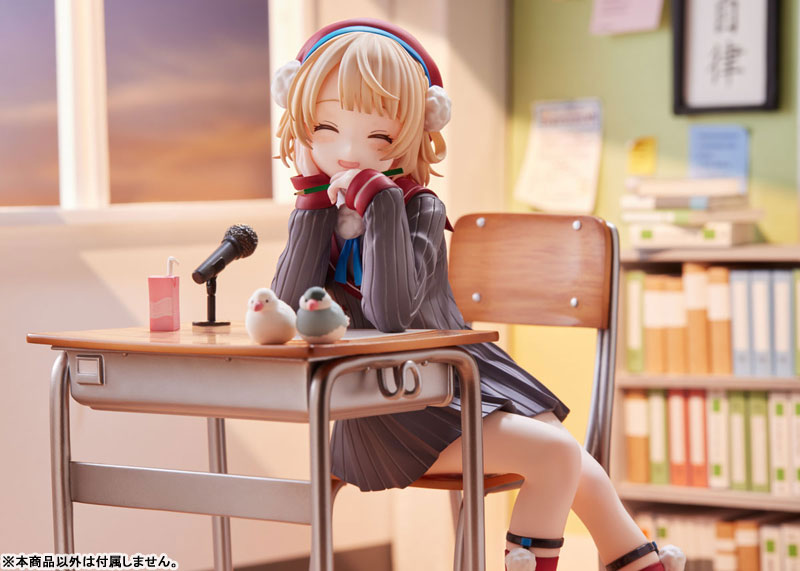 PVC, ABS Explanation Prototype production: Moineau Color production: Nana Moriyama ◇ Shigure Uiga F: The long-awaited 1/7 scale figure from NEX! Illustrator and Vtuber Shigure Ui has created a 1/7 scale figure based on the illustration drawn for the figure. Her pale red cheeks and sparkling, impressive and beautiful eyes have been faithfully reproduced from the illustration. The way she looks at you with her chin resting on her chin, her light flowing hair, and her trademark white bonbon have all been made with great attention to detail, making her extremely cute. The pedestal is printed with a tile surface that looks like a school floor, and the school desks and chairs boldly express the after-school world. A smiling face with closed eyes is included as a replacement part. The illustrator himself becomes a figure! ? Have Shigureui at hand. ◇The hat is removable! The light flowing hair, striking and beautiful eyes that sparkle, and the way she stares at you with her pale red cheeks have created a cute figure with an impressive appearance. The hat is removable so you can enjoy changing it. ◇Familiar sailor suit The sailor suit is carefully modeled with wrinkles and luster in the fabric. The ribbon on the neck bonbon, socks, and shoes are carefully finished down to the leather material and metal parts. ◇Even the sparrows are carefully sculpted. The sparrows watching over you on the desk are completely reproduced! The pencil in his hand, the microphone that is essential for broadcasting, and even the details of the drink in the paper carton are finished without any compromise. ◇Two types of face parts! Replacement parts include a smiling expression with closed eyes. ◇A view of the world that looks just like after school.Nostalgic school desks, chairs, and pedestal floors. The pedestal is printed with a tile surface that looks like a school floor, and the school desks and chairs boldly express the after-school world. ◇Cute from any angle 360° Light flowing hair, sparkling, impressive and beautiful eyes, a removable hat and 2 types of face parts. The familiar sailor uniform, socks and shoes, accessories such as sparrows and paper cartons of drinks are sculpted, school desks and chairs express an after-school world view, and the floor of the pedestal… Take a 360° look at Shigureui, who is cute no matter where you look from. ◇The illustrator himself becomes a figure! ? Have Shigureui at hand.