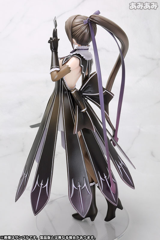 1/8 (total height: approx. 215mm) Explanation Prototype production: Keijiro Mada From Sega’s “heart-touching RPG” “Shining Hearts”, we have commercialized Maxima Enfield, the mysterious woman who guides the main characters. Her long, arcing ponytail and dress with a wide hemline give her a sense of spaciousness, but her calm facial expressions and standing posture, which are typical of an adult woman, have been sculpted into a three-dimensional figure that retains the charm of Tony’s illustrations. The “Renseiba Keducion” held in his right hand, the cards in his left hand, and even the decorations and patterns on his costume have been recreated down to the last detail.
