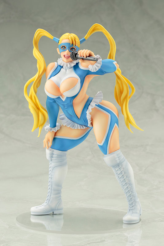Total height: approx. 210mm (including pedestal) Explanation Prototype production: Masahiro Takahashi (GILL GILL) Rainbow Mika, a female professional wrestler with a fighting spirit, joins the STREET FIGHTER beautiful girl. It has been turned into a BISHOUJO by original illustrations by Shunya Yamashita and sculptor Masahiro Takahashi (GILL GILL). Contrary to her blond twintail hair and childish expression, her voluptuous body, which stands out as if her uniform is bursting, captivates the viewer with her healthy charm. The pose in which she performs with a microphone held in her left hand makes you imagine the many ways she speaks. Please enjoy the ever-expanding stage of STREET FIGHTER beautiful girls at your fingertips.