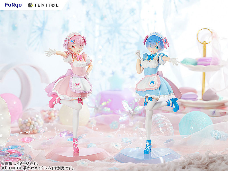 Product Specifications Painted finished product [Size] Total height: approx. 200mm (including pedestal) [Material] Plastic Explanation Prototype: Sparrow Co., Ltd. From Furyu’s affordable figure brand “TENITOL” comes Ram dressed in a dream-colored maid outfit. Lam’s pastel pink mini-length maid uniform has plenty of frills and ribbons, creating a dreamy and cute world. In addition, every detail has been carefully sculpted, such as the heart and ribbon headdress, knee-high socks, and the small heart pattern sprinkled on the hem of the skirt. Please have this dream-colored cute rum at hand. The pose where she cheerfully raises her arms and legs is paired…