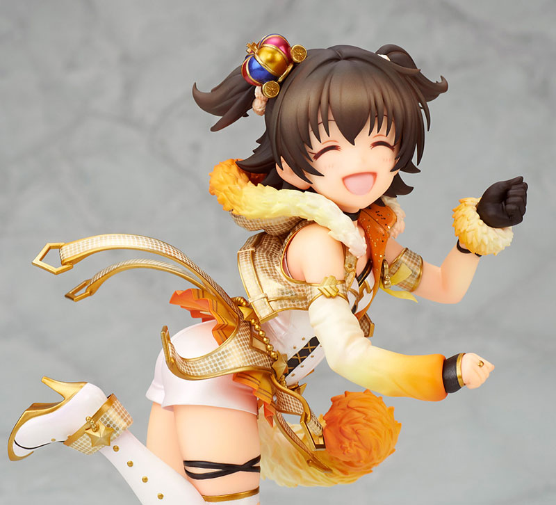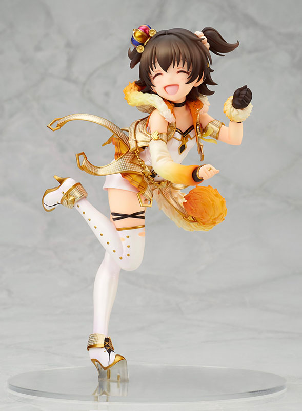 Product specifications Painted finished product [Scale] 1/7 [Size] Total height approx. 190mm [Material] PVC [List of set contents] Figure body Dedicated base Explanation Prototype: SAI Coloring: Yasuhiro Watanabe From “THE IDOLM@STER CINDERELLA GIRLS”, “Milia Akagi” appears! She has been made into a three-dimensional figure wearing the “Party Time Gold” costume. The smiling expression on her face is full of cuteness. The dynamic pose is reminiscent of a fun performance on stage. The costumes are also reproduced in detail, and the gently spreading decorations create a sense of movement. The innerwear and knee socks are coated with pearl paint, giving it…
