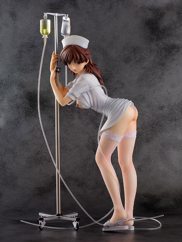 Total height: approx. 440mm (1/4 scale) Description The heroine “Amane Shiratori” from the popular adventure game “The Nurse You Didn’t Know” has been made into a three-dimensional figure in a disheveled nurse outfit. The way she leans on the girdle with her chest boldly open and her buttocks sticking out is very attractive! You can play with the drip tube hanging from the included girdle stand by wrapping it around your body or letting it hang as you like, and you can also recreate the figure wearing glasses! Please have a dedicated nurse on hand.
