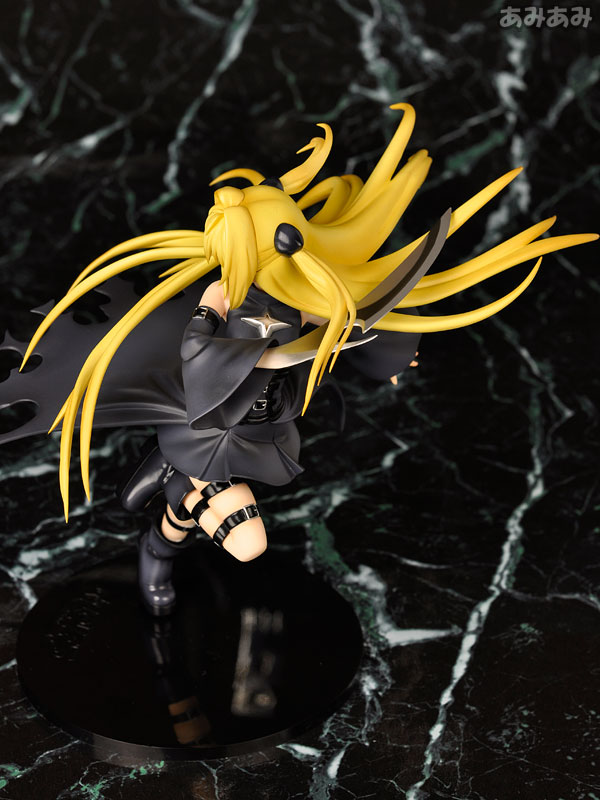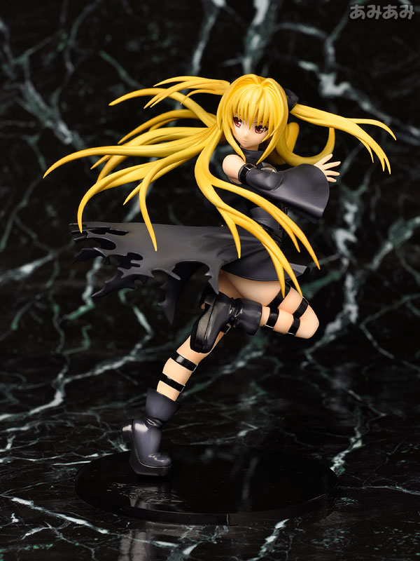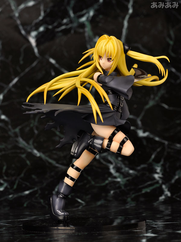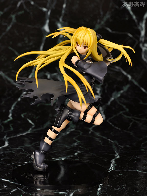 Figure body Dedicated pedestal Replacement right arm Explanation First release: April 2009 TBA Prototype production: Hironori Tokunaga Planning and production: Good Smile Company From the popular Weekly Shonen Jump series “ToLOVE-Ru”, which also had a well-received anime, comes the “Golden Darkness”, the assassin considered the most dangerous in the universe. It has been made into a three-dimensional model based on a newly drawn illustration from the anime design. A dynamic pose that seems to stretch upwards is expressed through the movement of the body, hair, and clothes. The right arm can be replaced with a blade, which is the murder weapon. The pose is paired with “Lara”, so displaying them together will double the charm.