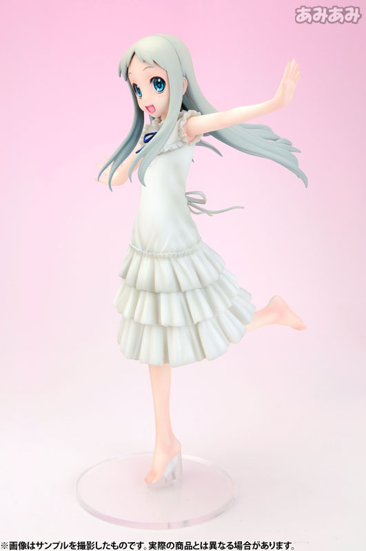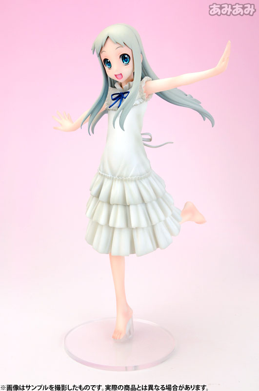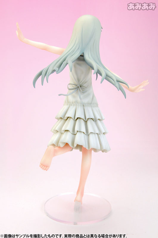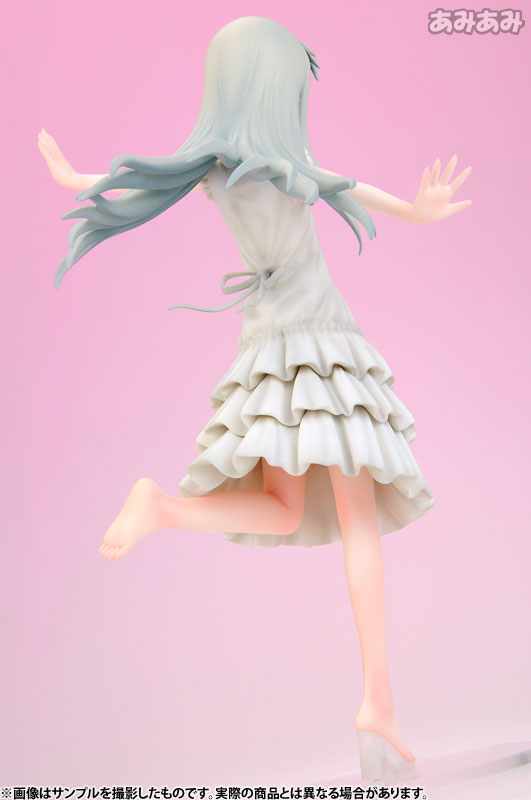 1/8 (total height: approx. 190mm) Explanation Prototype production: Takutomo Nakamura The TV anime “We still don’t know the name of the flower we saw that day” was broadcast on Fuji TV’s Noitamina slot from April 2011. ”. The main heroine, Menma (Meiko Honma), has been featured in this work, which has become a hot topic for its heartbreaking story about the bond between childhood friends and their growth, careful direction, and the event “ANOHANAFES.” held in Chichibu City, Saitama Prefecture, where the work is set. The smile on his face is so full of energy that it makes everyone around him cringe. The way she looks at me with her eyes slightly up is inspired by Menma, who is the smallest of her six childhood friends and has a mascot-like presence. The innocent cuteness of Menma is overflowing from the way she spreads her arms wide and catches the wind. The “white dress” is a key item in the story and Menma’s charm point. The all-white costume is difficult to create a three-dimensional effect, but the natural shadows are expressed by gradation painting. The ribbons and frills on the back that flutter in the wind are also carefully sculpted. Her fair skin and slender limbs give off a delicate and ephemeral vibe, while her outstretched arms and innocent smile give off an energetic and “innocent” vibe, making this a figure that is truly filled with Menma’s charm.